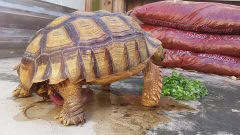 3. “清洁工”:吃掉小瓜后,乌龟们还会用它们的舌头舔舐嘴巴周围,清理残留的食物。